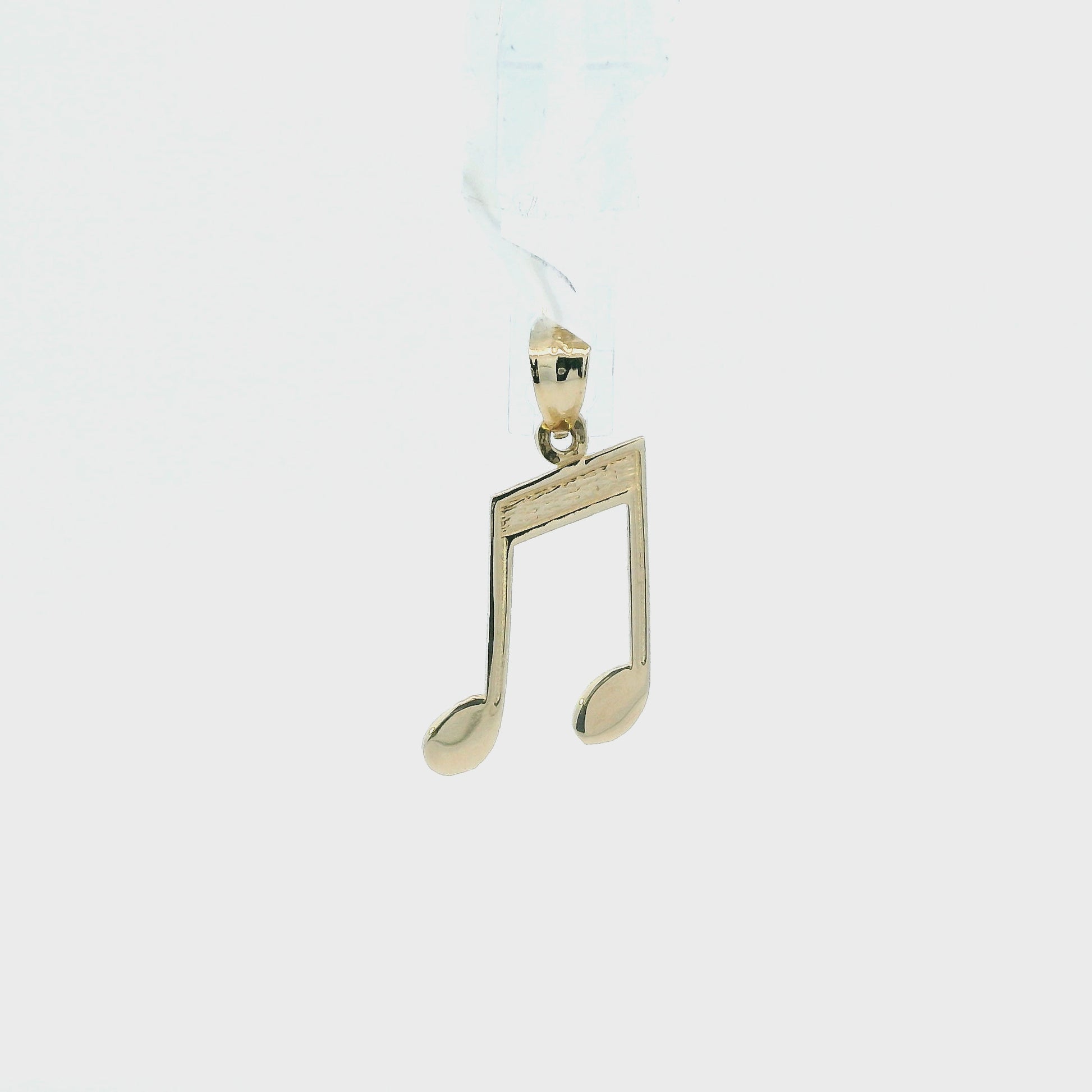 This is a beautiful gold music note pendant that is in clean preowned condition. It has been authenticated and polished by our in-house goldsmith.