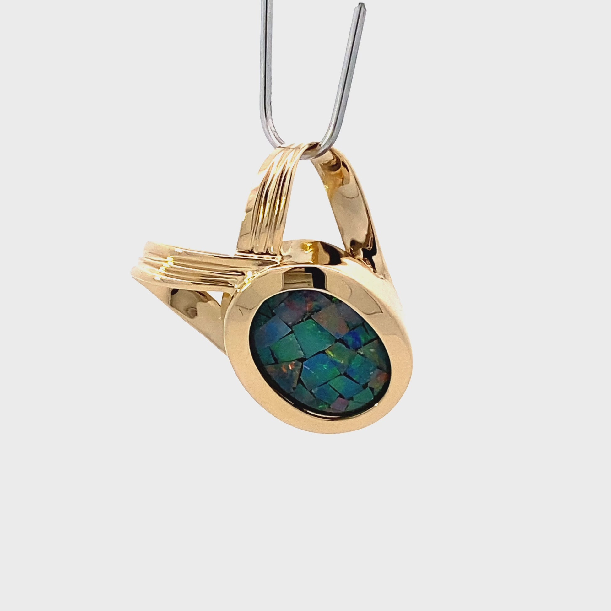 14K Yellow Gold Oval Opal Mosaic Cabochon Pendant