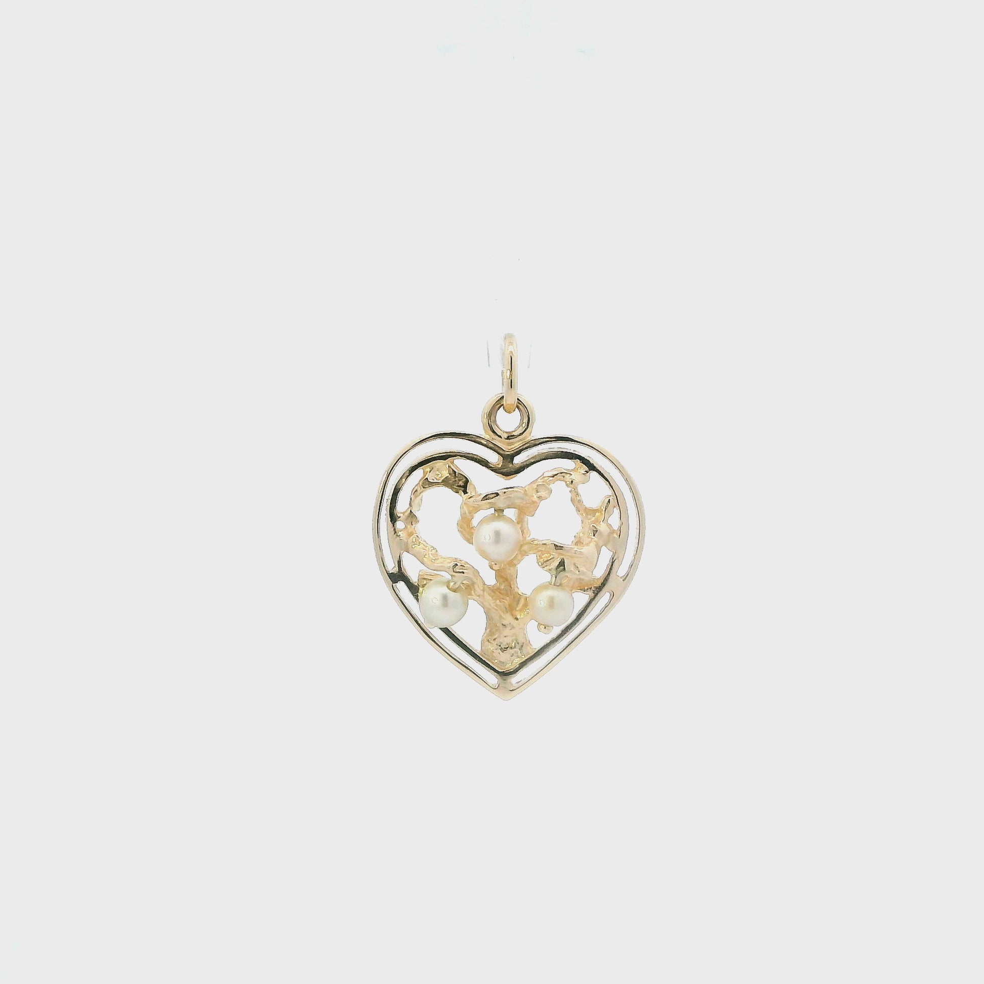 This is a beautiful gold pearl heart pendant that is in clean preowned condition. It has been authenticated and polished by our in-house goldsmith / gemologist.