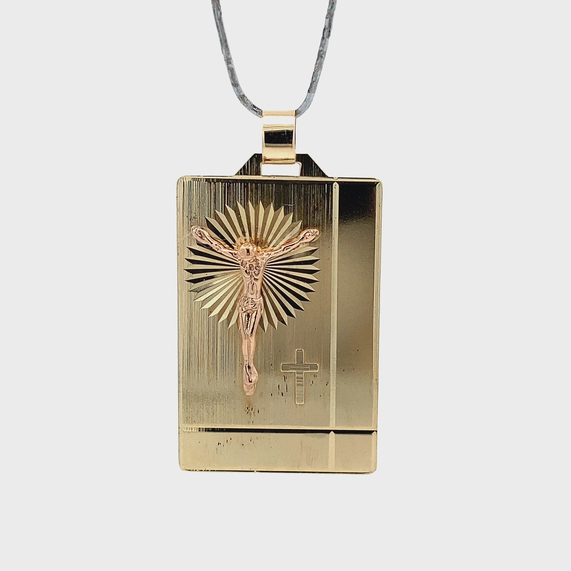 14K Yellow Gold Rectangle Religious Figure Pendant
