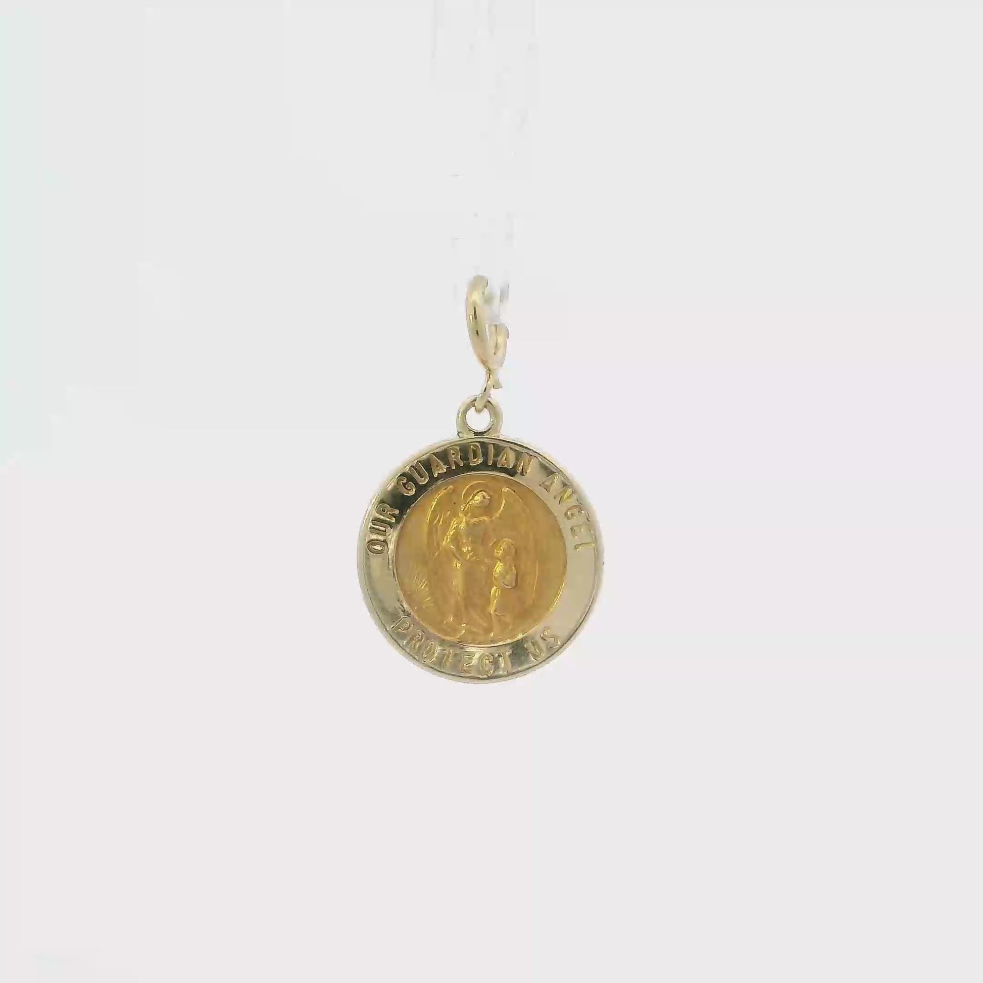 14K Yellow Gold Round "Our Guardian Angel Protect Us" Charm/Pendant