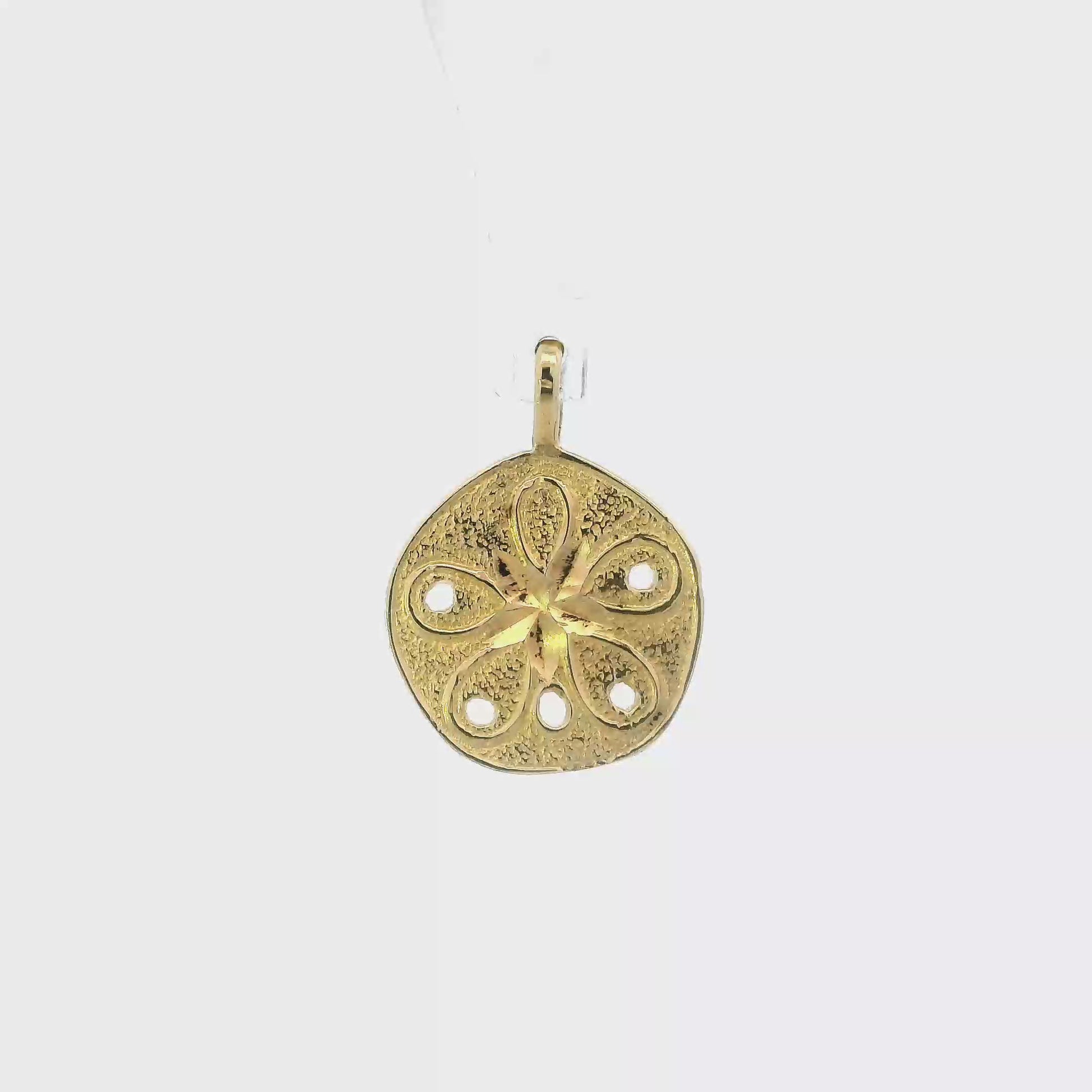 This is a beautiful gold sand dollar pendant that is in clean condition. It has been authenticated and polished by our in-house goldsmith.