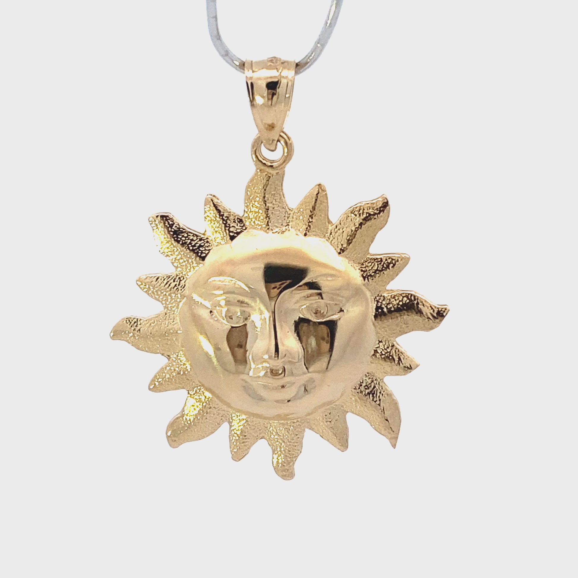 This is a beautiful gold sun face pendant that is in clean condition. It has been authenticated and polished by our in-house goldsmith.