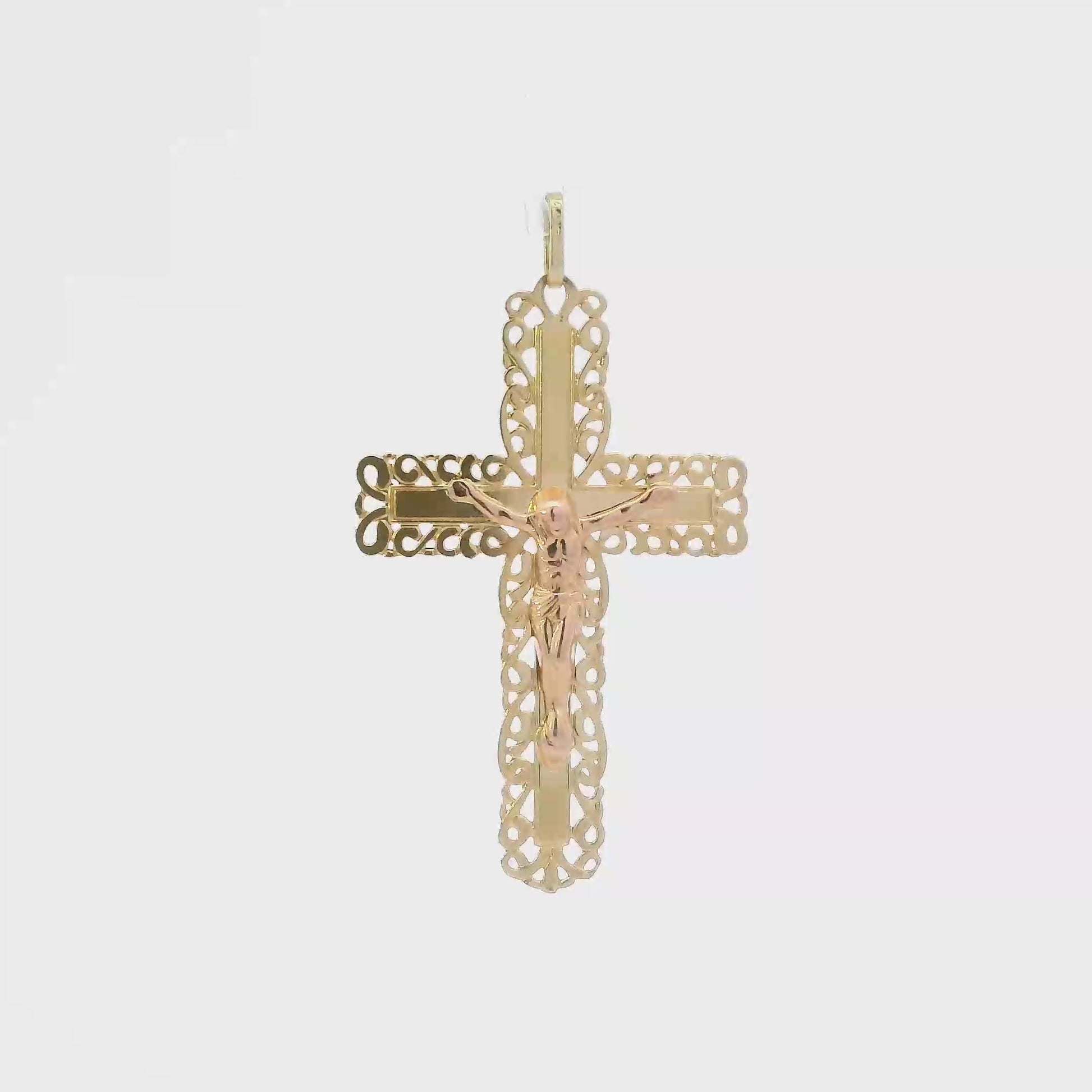 14K Yellow & Rose Gold Filigree Crucifix Pendant