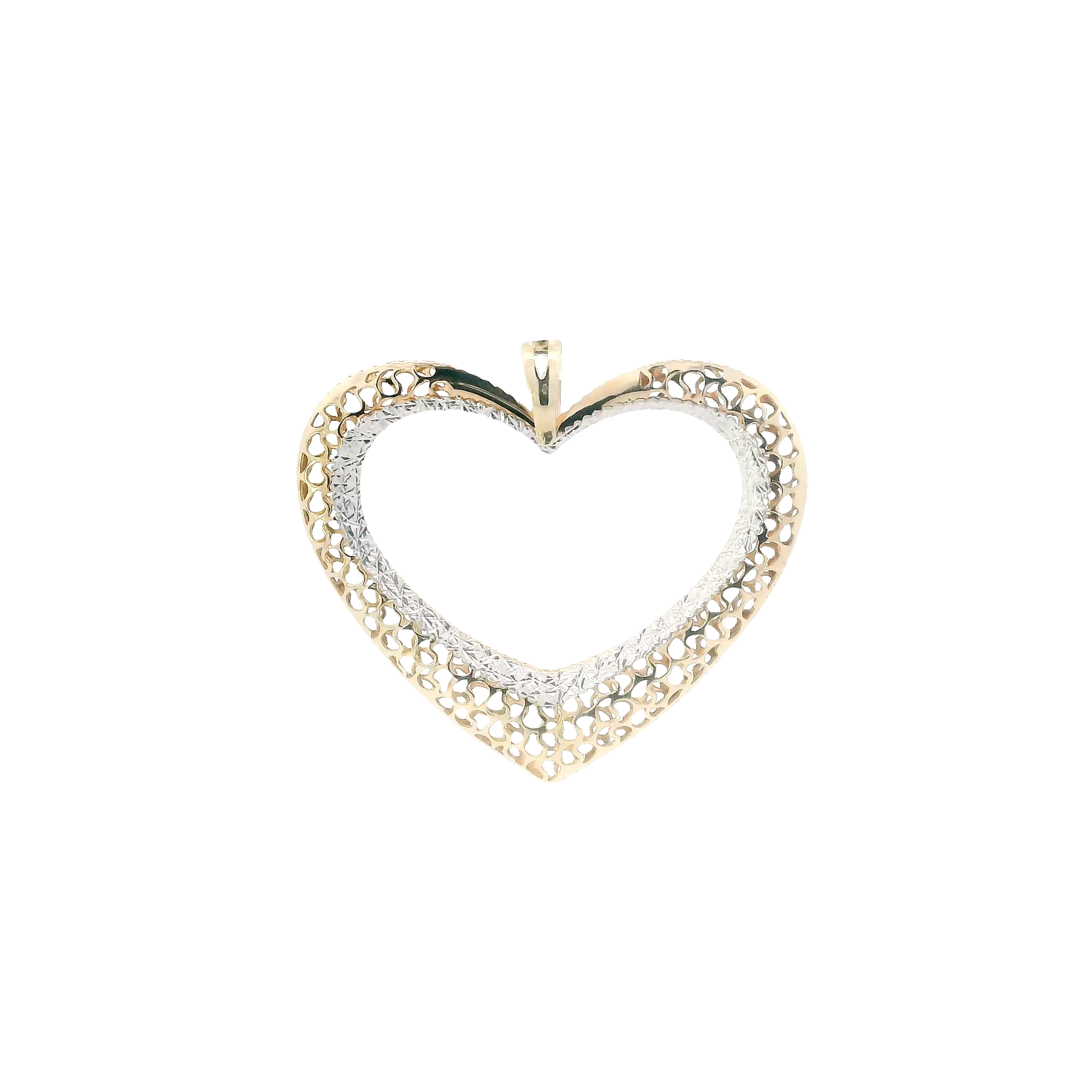 14K Yellow & White Gold Filigree Open Heart Pendant