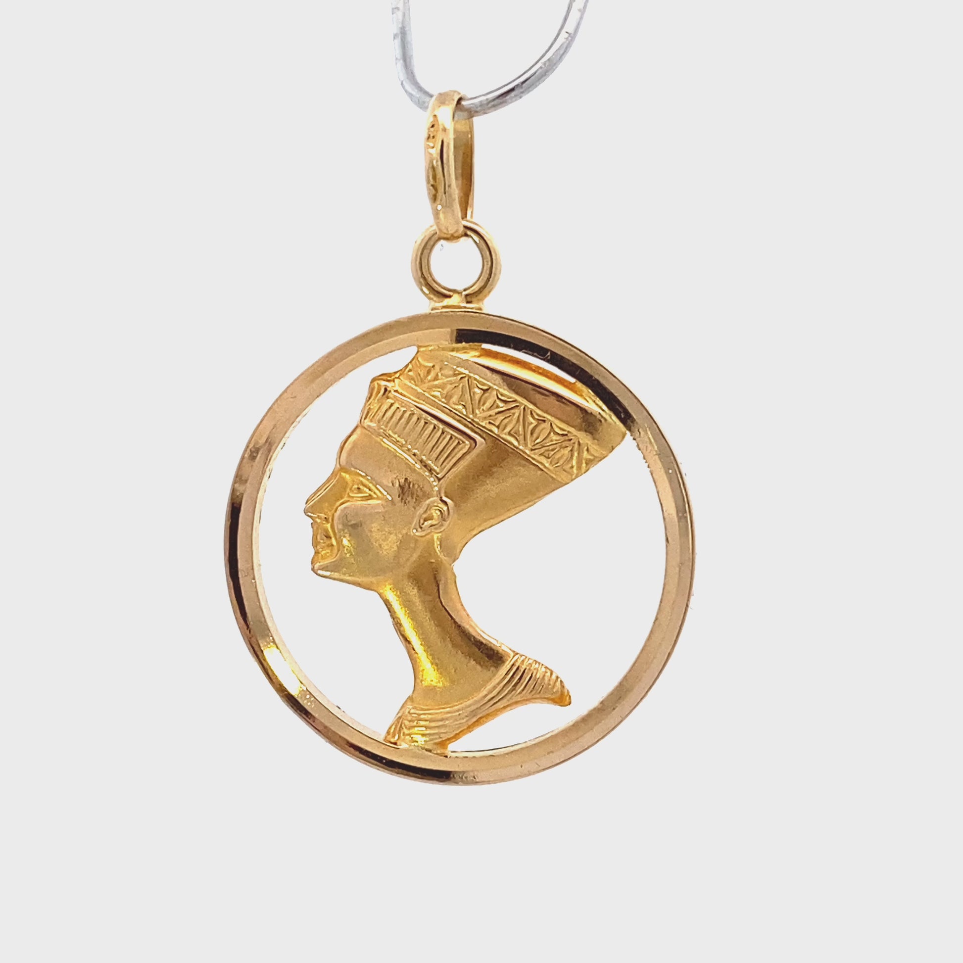 This is a beautiful gold Nefertiti pendant that is in clean condition. It has been authenticated and polished by our in-house goldsmith.