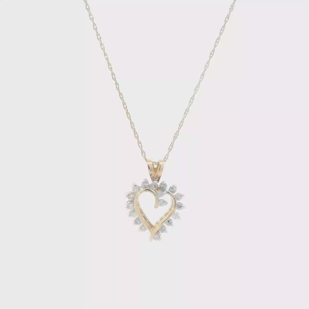 18K Yellow Gold & Rhodium Diamond Heart Pendant - 0.50ct