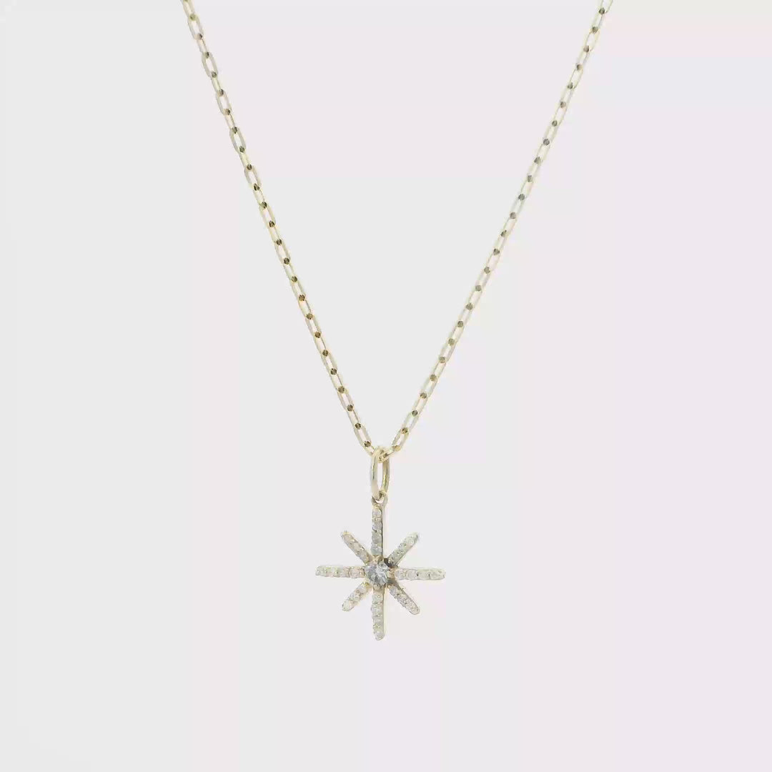 10K Yellow Gold Diamonds Snowflake Pendant & 16-20" Cable Chain - 0.17ct