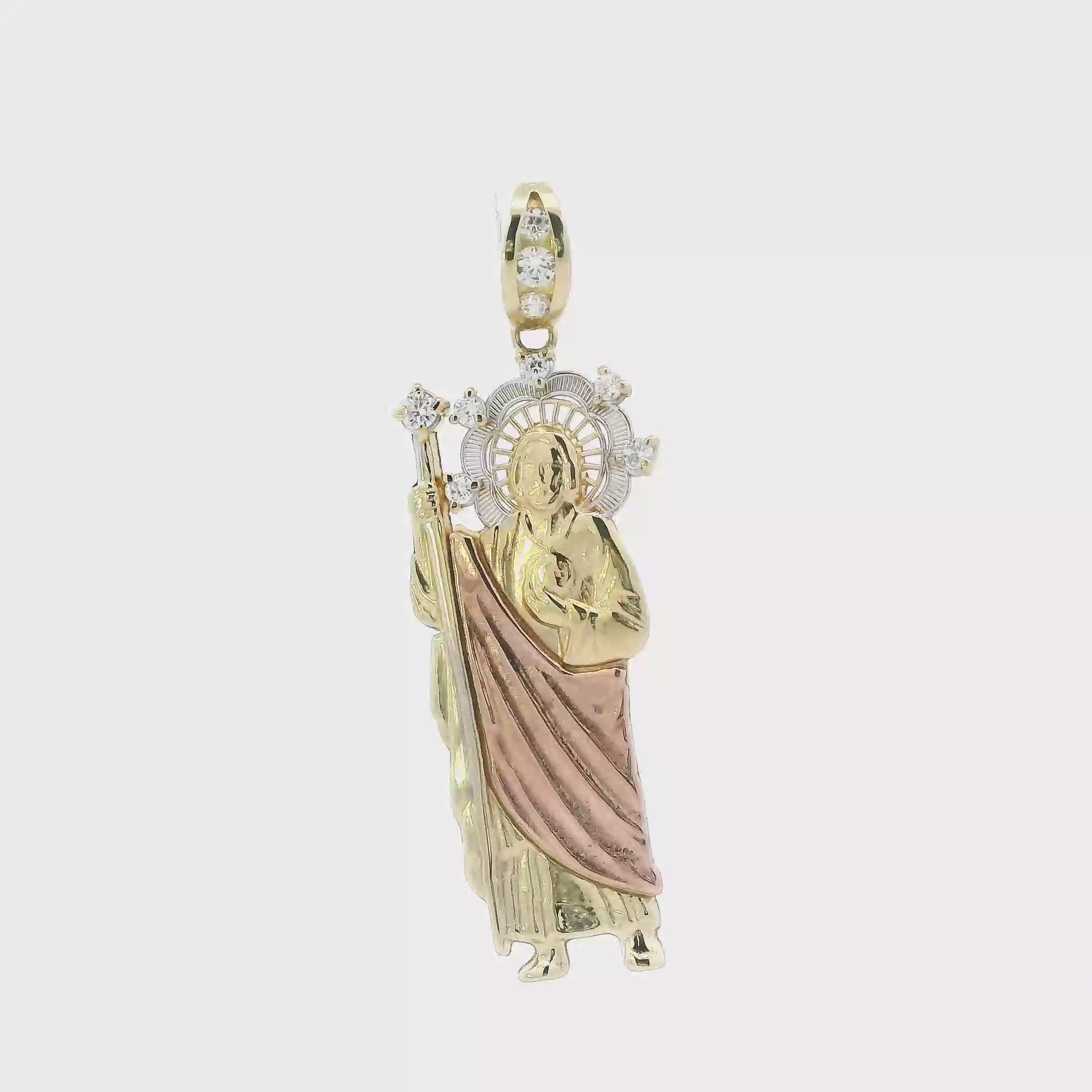 This is a beautiful gold standing religious figure pendant that is in clean preowned condition. It has been authenticated and polished by our in-house goldsmith / gemologist.