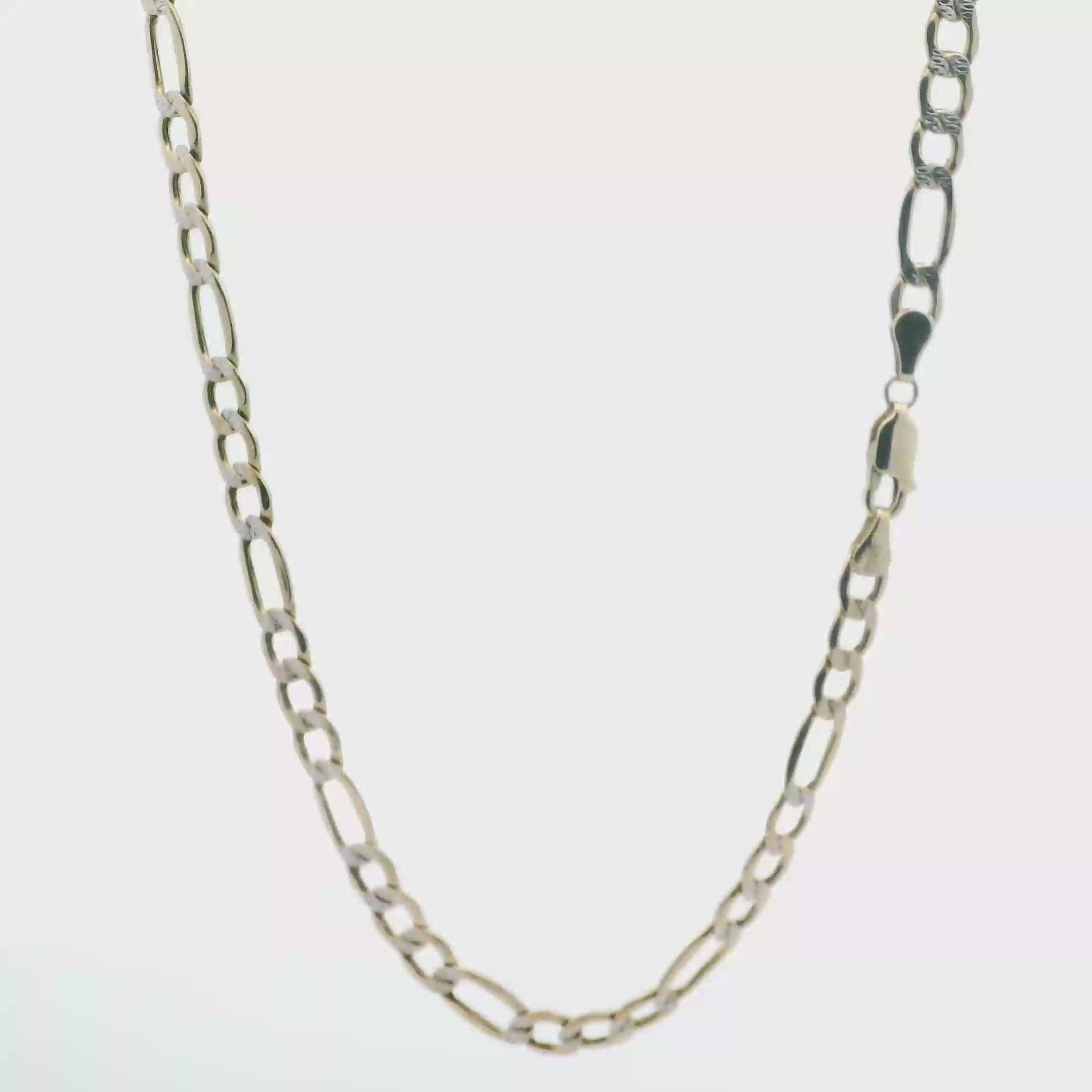 This is a beautiful gold figaro chain that is in clean preowned condition. It has been authenticated and polished by our in-house goldsmith.