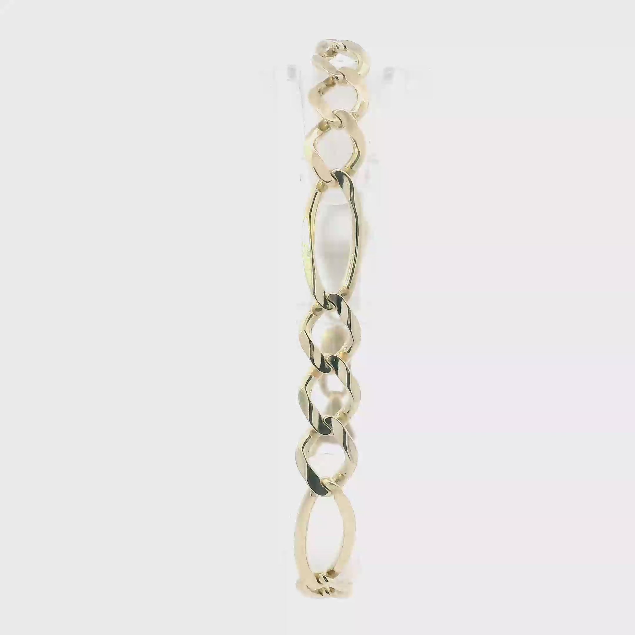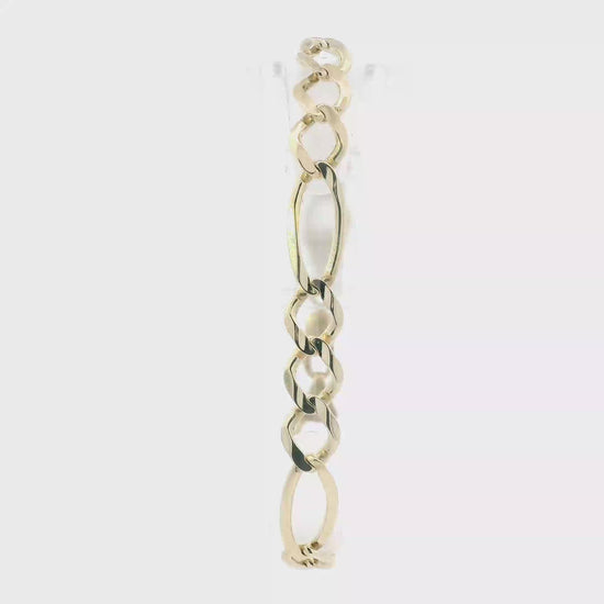 This is a beautiful gold figaro bracelet that is in clean preowned condition. It has been authenticated and polished by our in-house goldsmith.