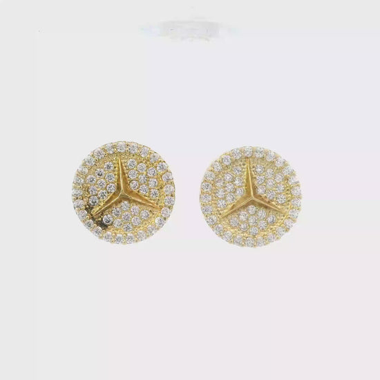 10K Yellow Gold Cubic Zirconia Mercedes Logo Stud Earrings