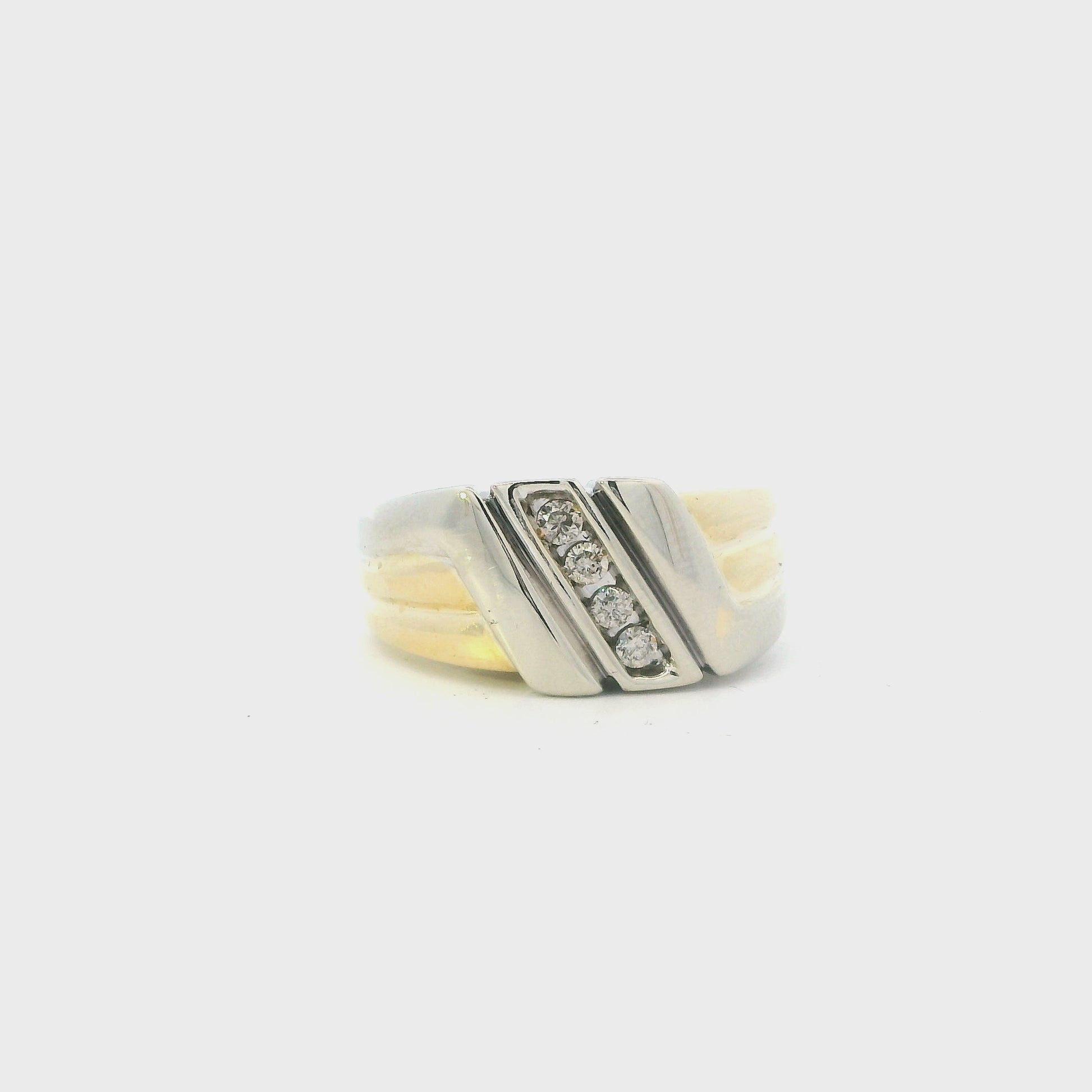 10K Yellow & White Gold Diamond Mens Ring - 0.18ct