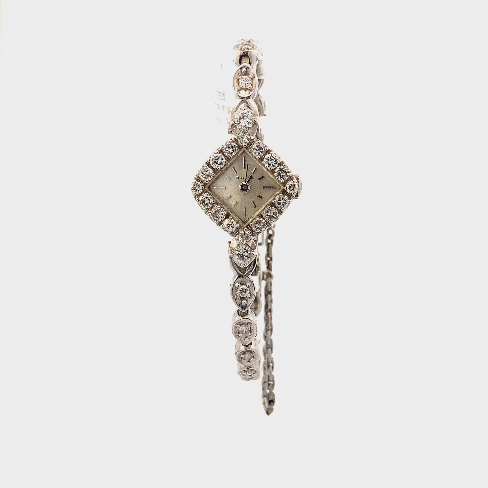 14K White Gold Bulova 17 Jewel Manual Wind Dress Women's Diamond Wristwatch - 1.79ct