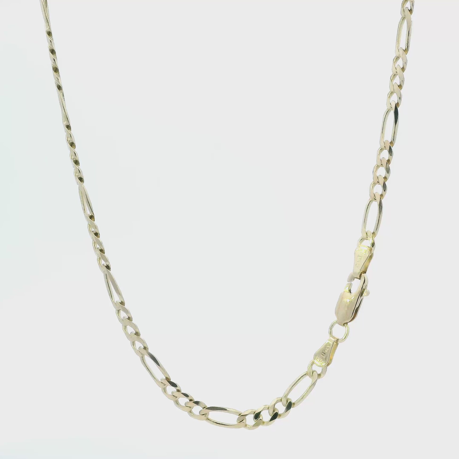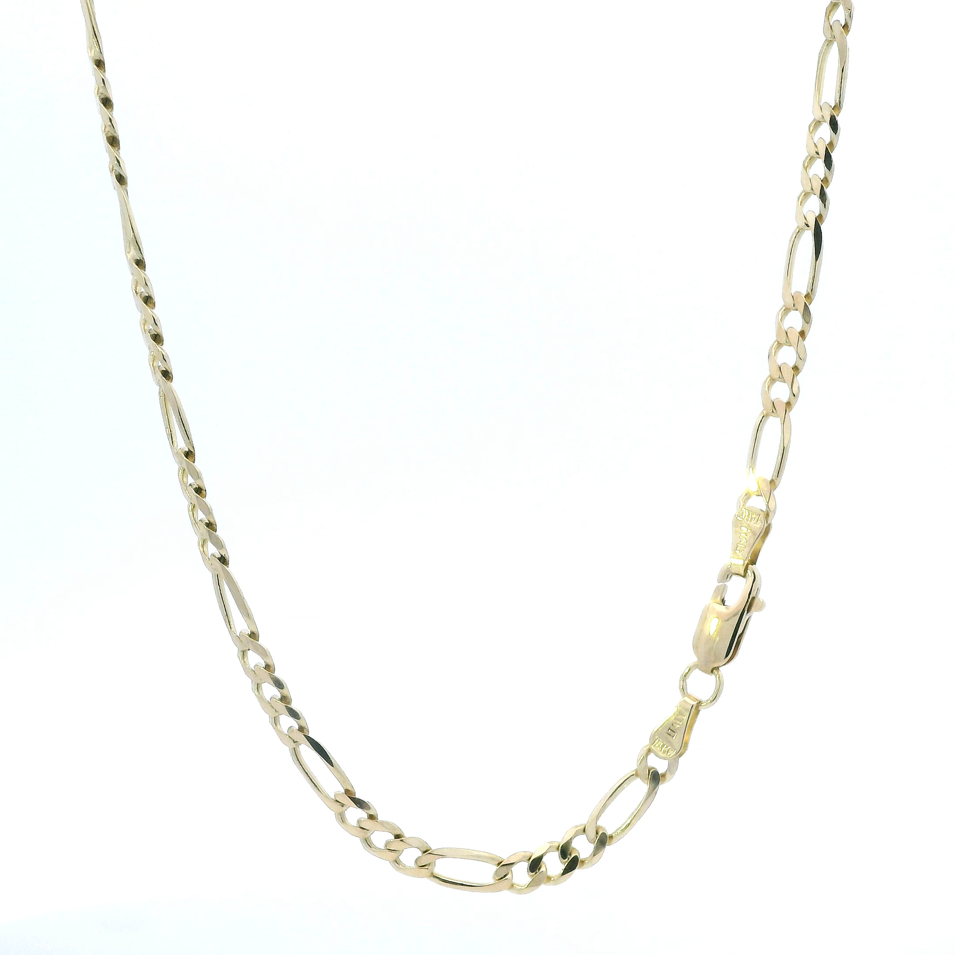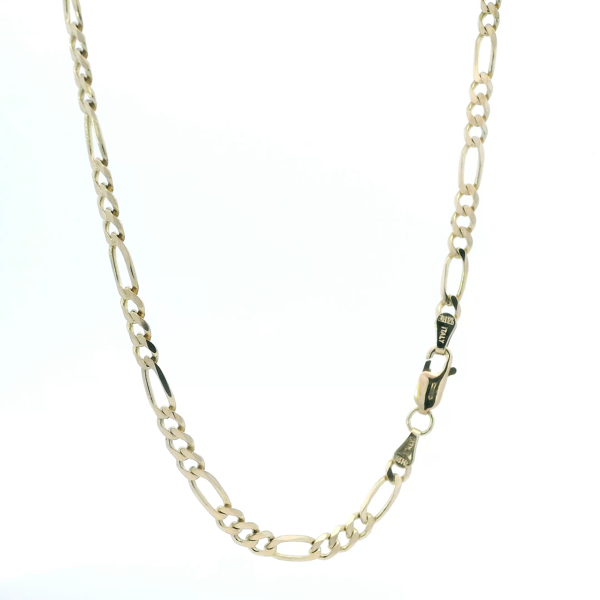 This is a beautiful gold figaro chain that is in clean preowned condition. It has been authenticated and polished by our in-house goldsmith.