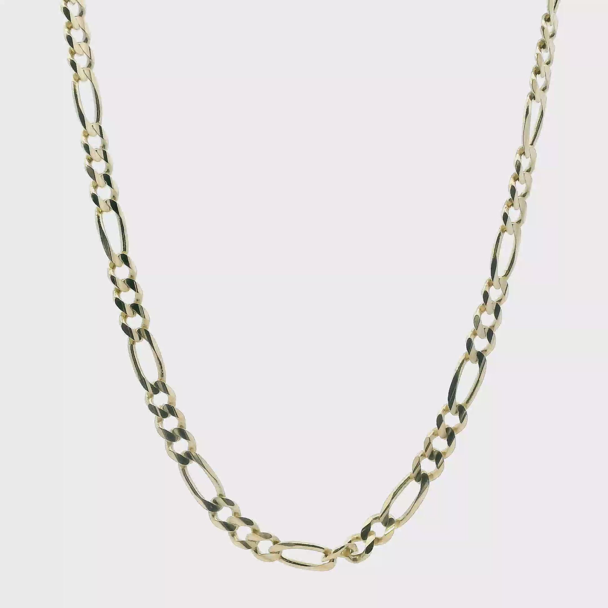 This is a beautiful gold figaro chain that is in clean preowned condition. It has been authenticated and polished by our in-house goldsmith.