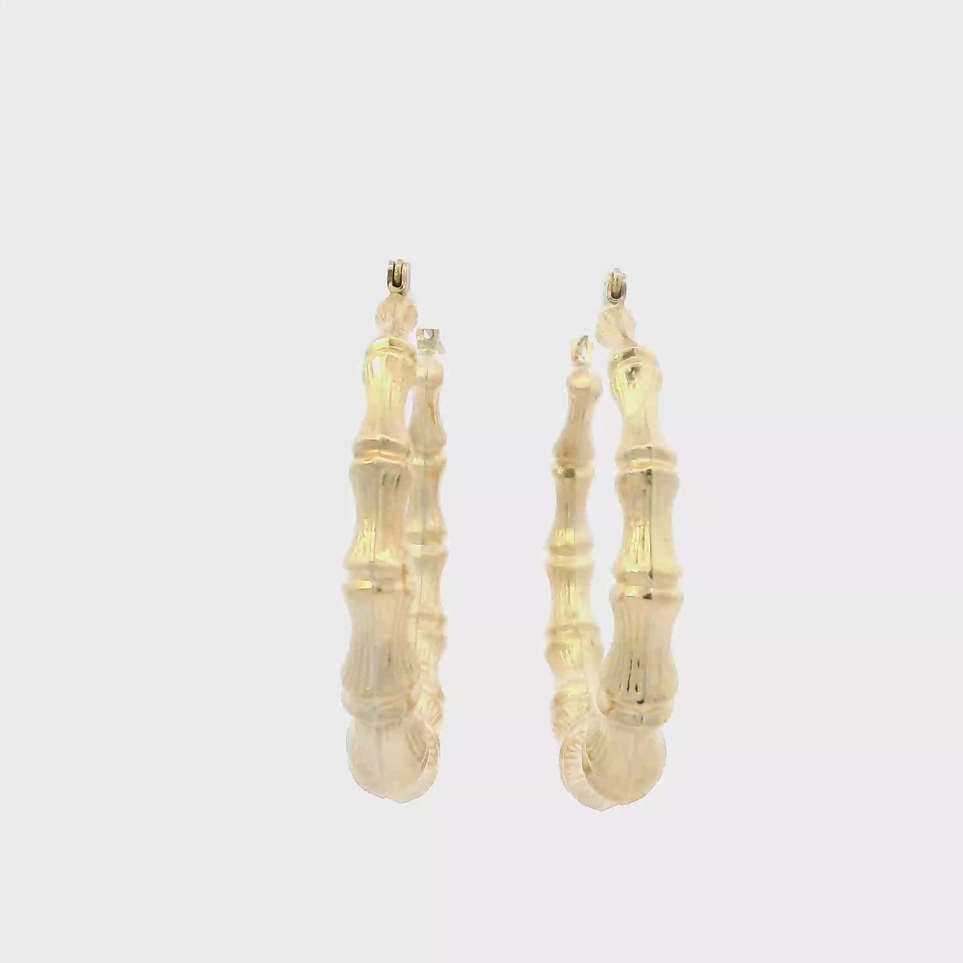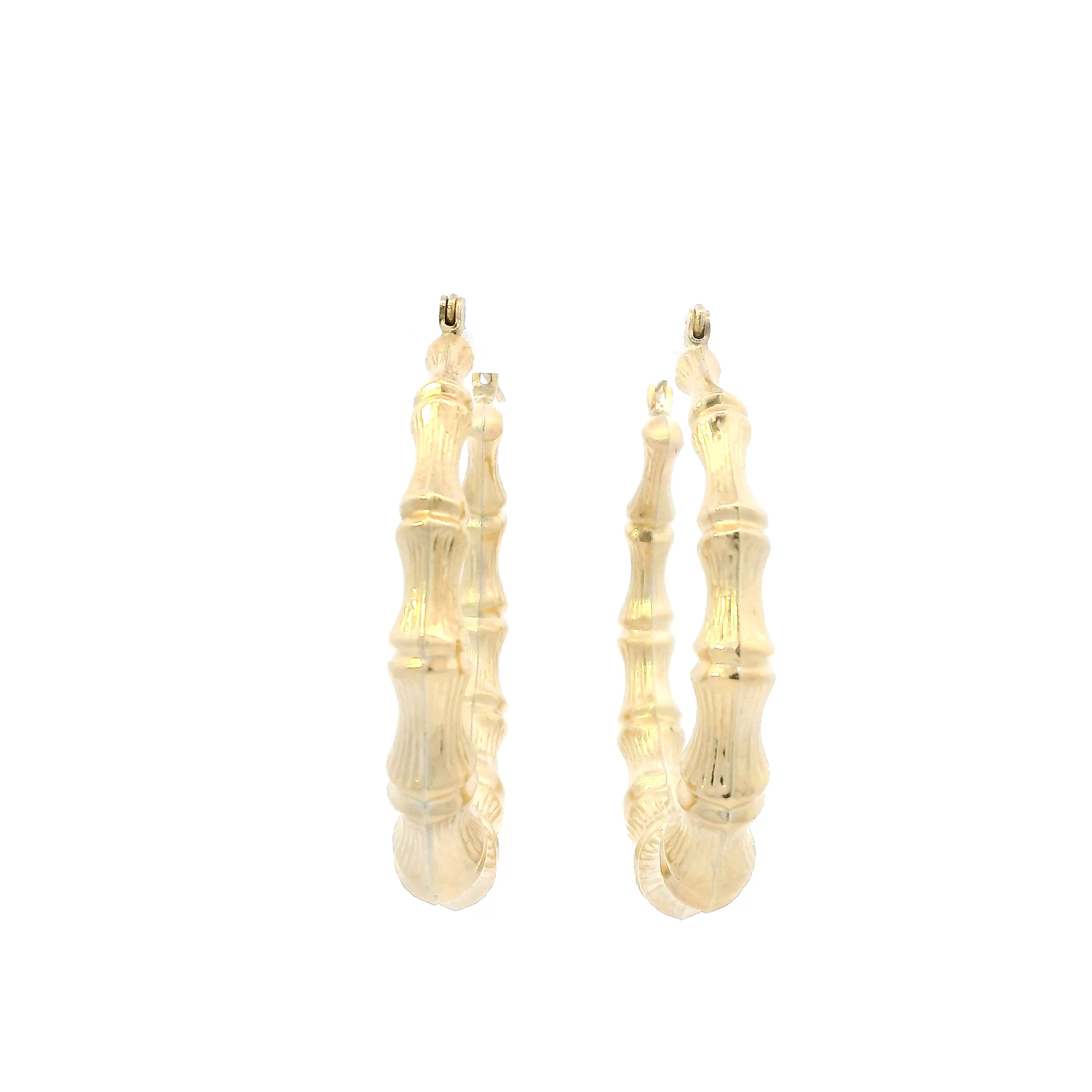 14K Yellow Gold Bamboo Hoop Earrings