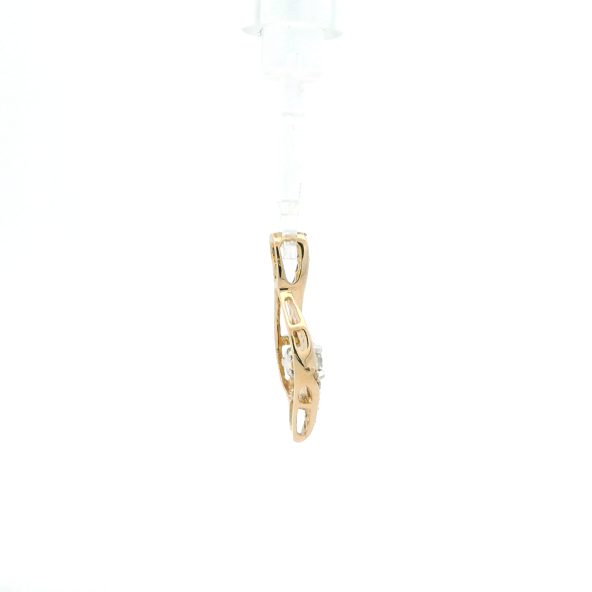This is a beautiful diamond abstract pendant that is in clean preowned condition. It has been authenticated and polished by our in-house goldsmith / gemologist.