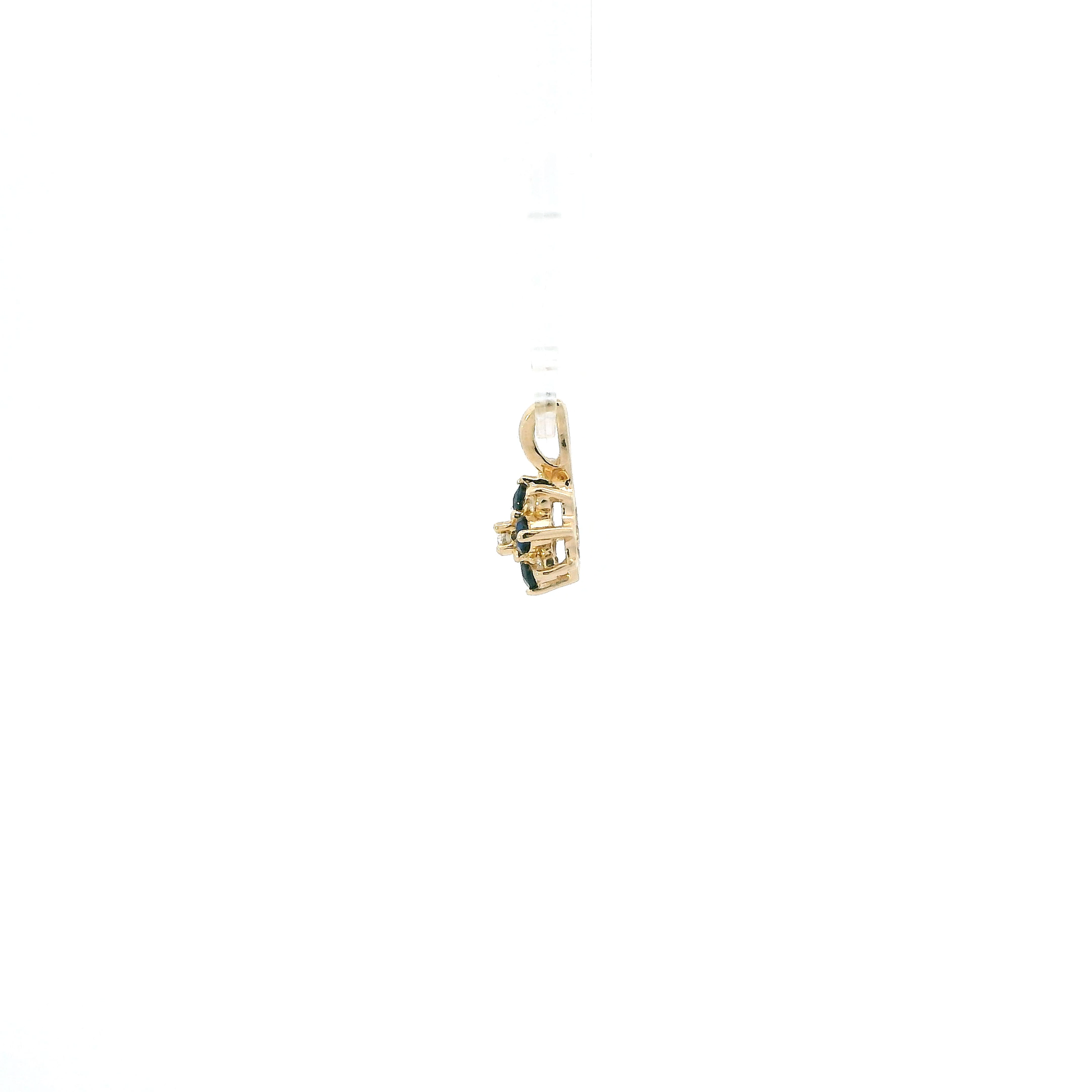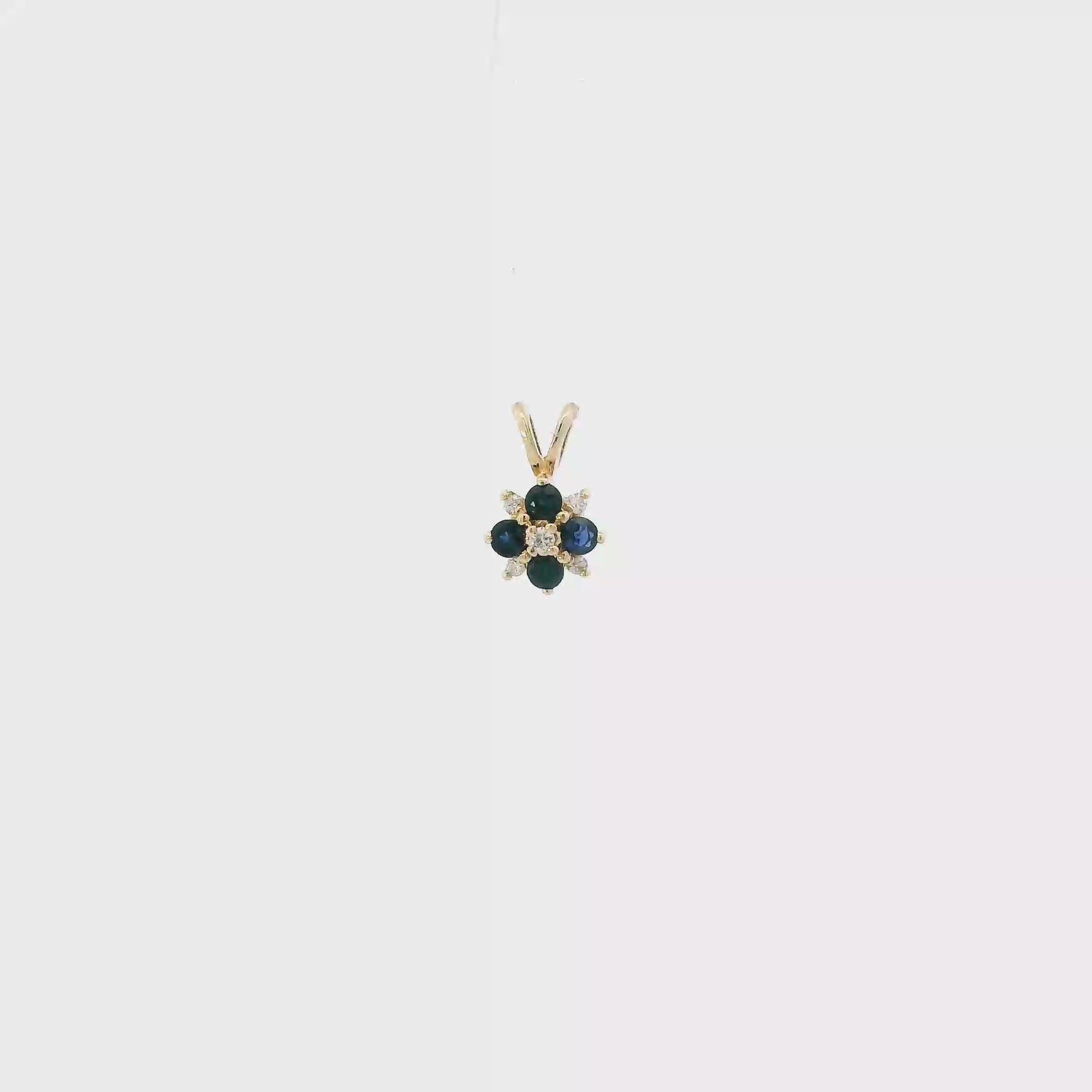 14K Yellow Gold Diamonds & Sapphire Flower Pendant - 0.07ct
