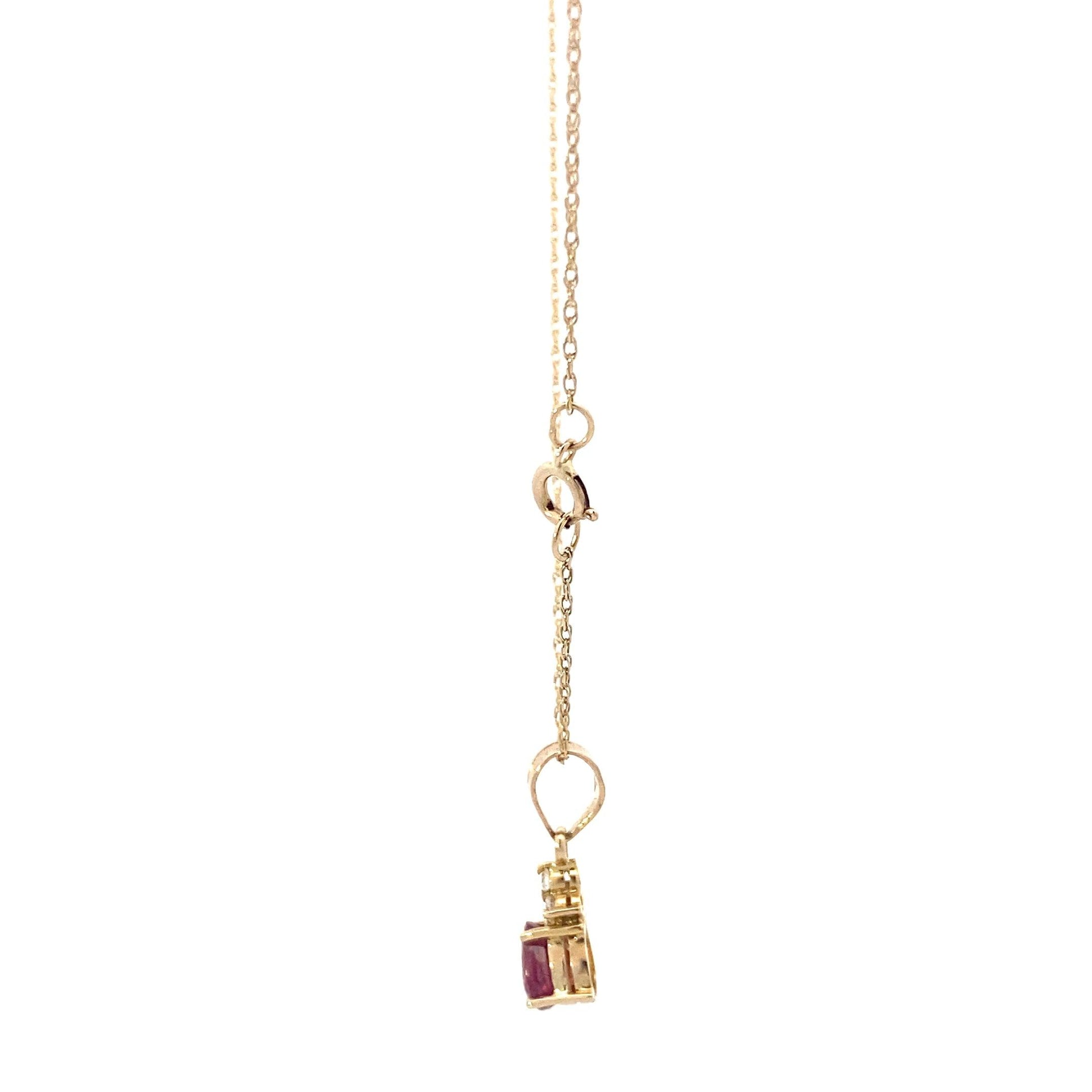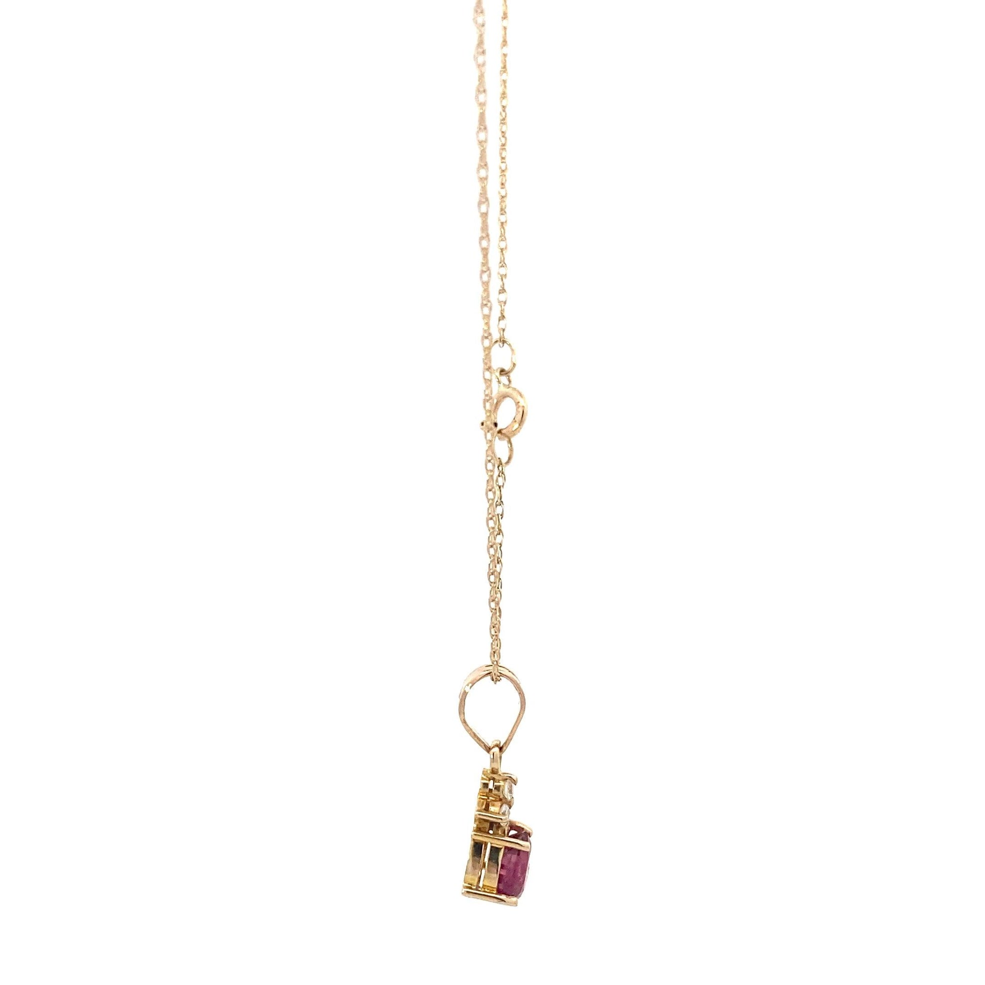This is a beautiful gold and ruby pendant and rope chain that is in clean preowned condition. It has been authenticated and polished by our in-house goldsmith / gemologist.