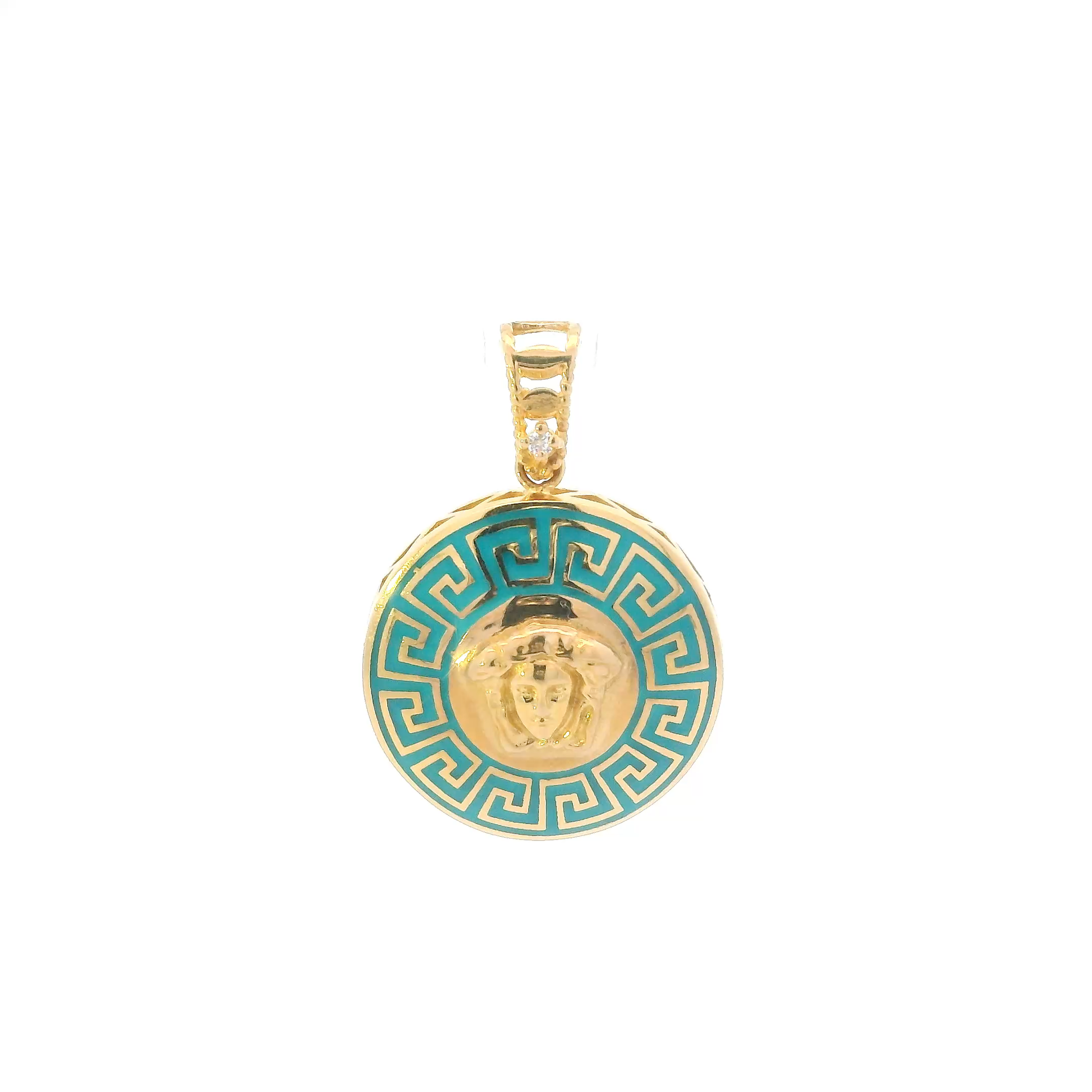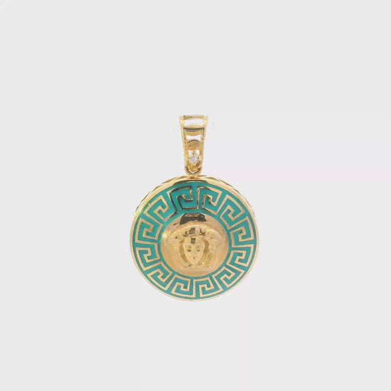 22K Yellow Gold Teal Greek Medusa Pendant