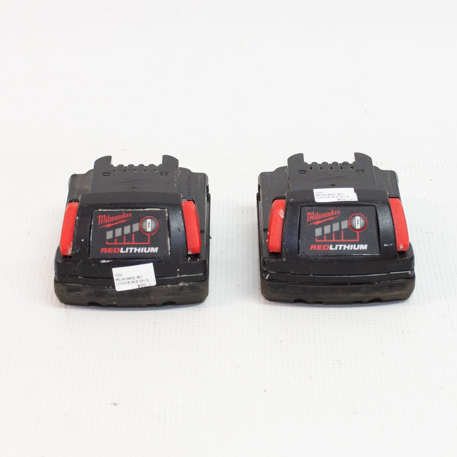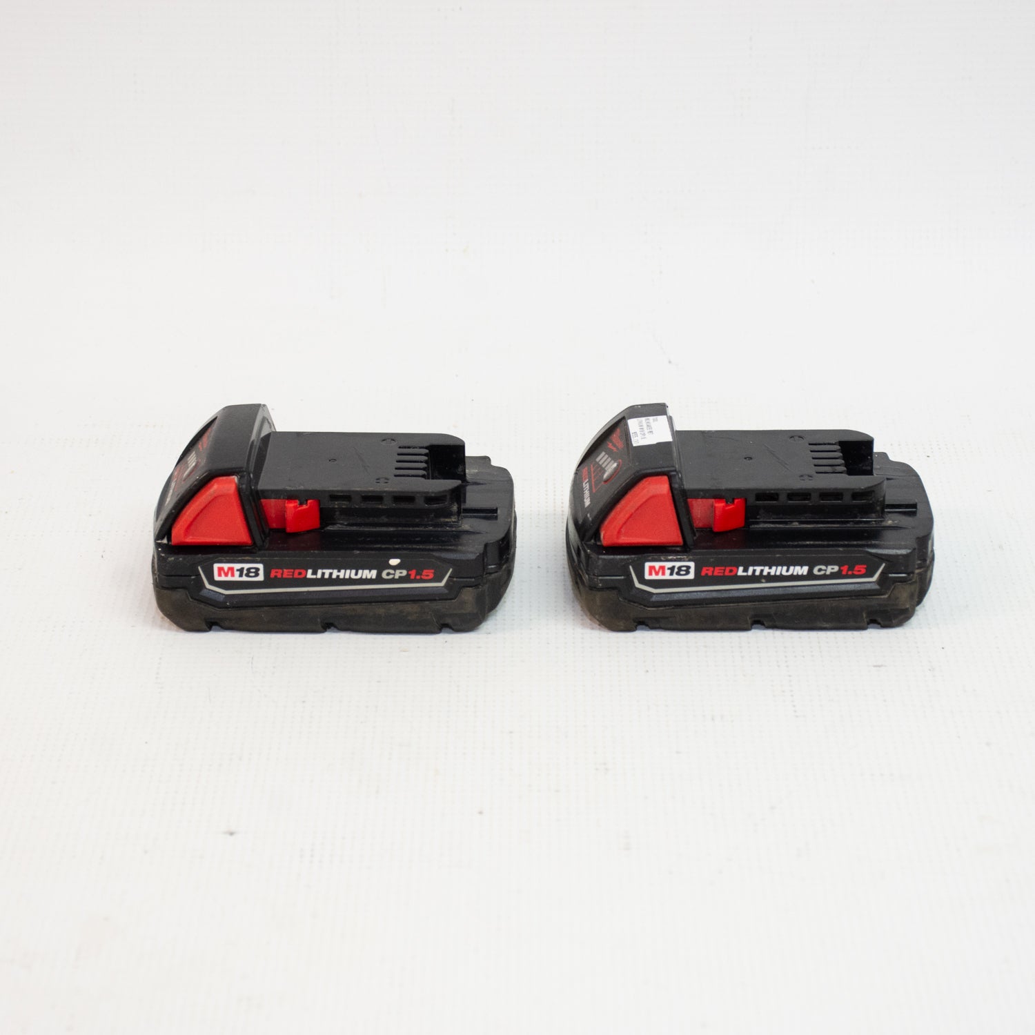 This is a preowned battery and charger bundle in good used condition. It has normal cosmetic scratches and some dust and dirt. It is fully functional and comes with 2x 1.5Ah batteries and a charger.