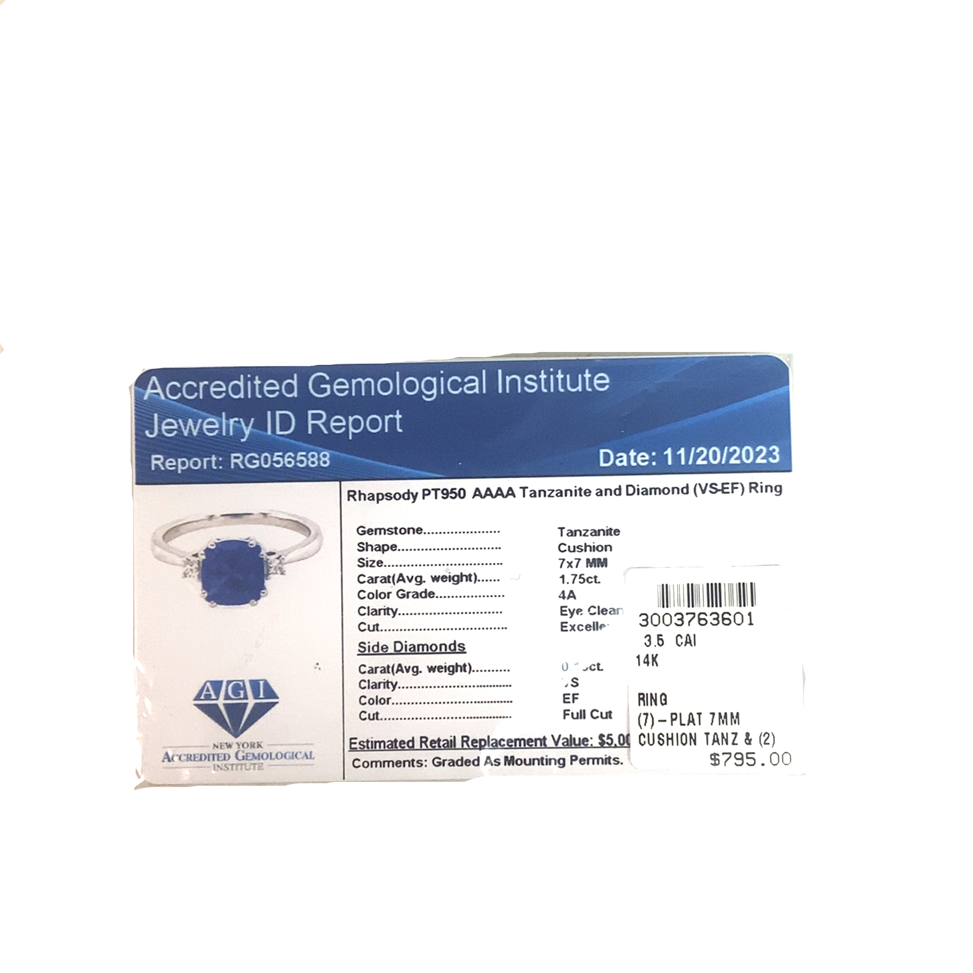 (1) 7mm Cushion Tanzanite