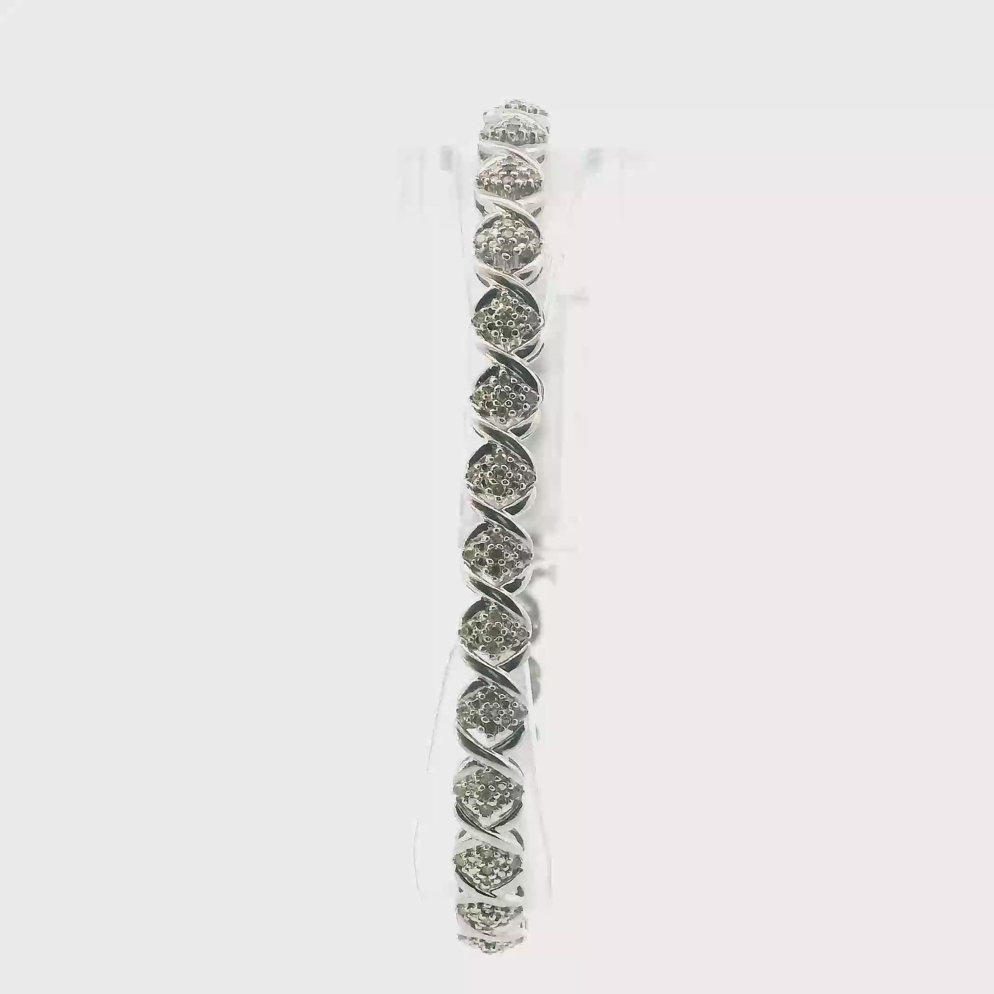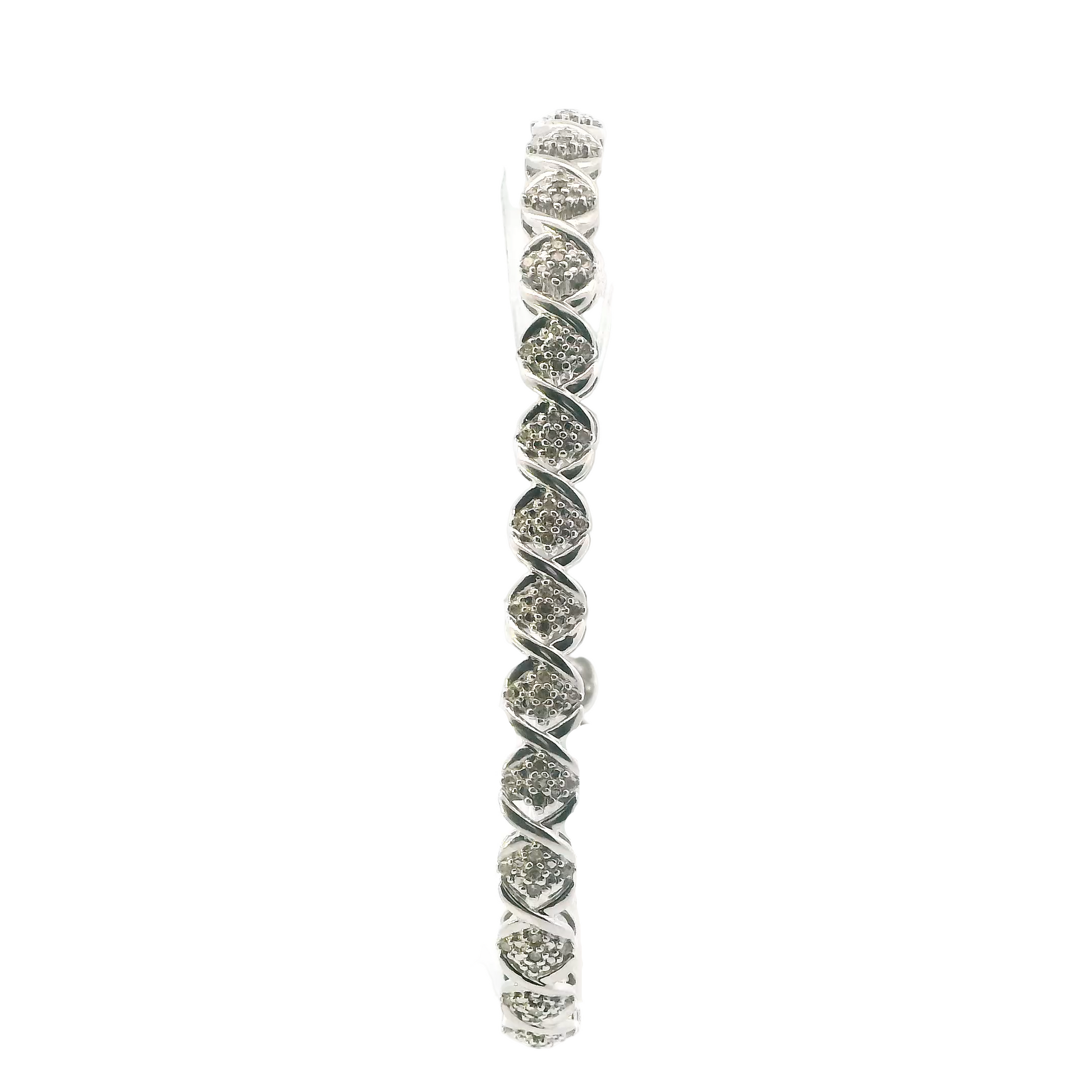 This is a beautiful sterling silver diamond cluster bracelet that is in clean preowned condition. It has been authenticated and polished by our in-house goldsmith.