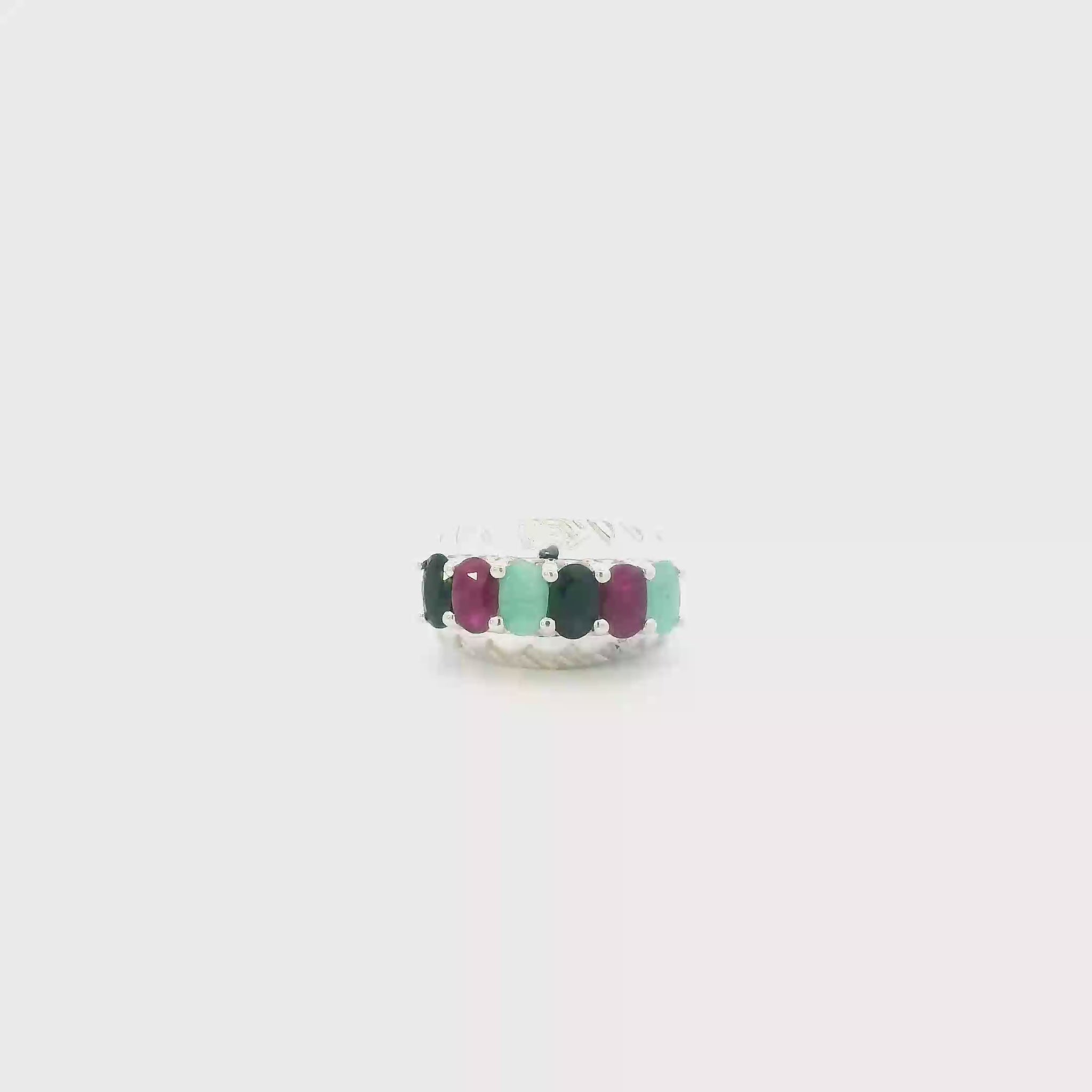 Sterling Silver Sapphire, Ruby & Chrysoprase Womens Ring