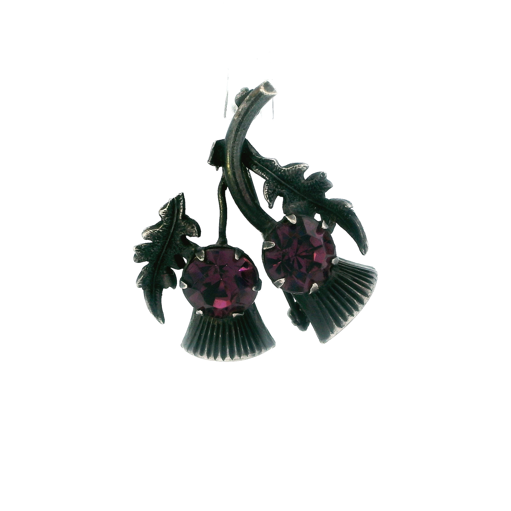 Vintage Silver Scottish Thistle Brooch With Purple Rhinestones By Ward Brothers